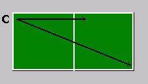 3-ий шаг — три мишени — удары выполняются последовательно по диагонали, по прямой, в центр стола.